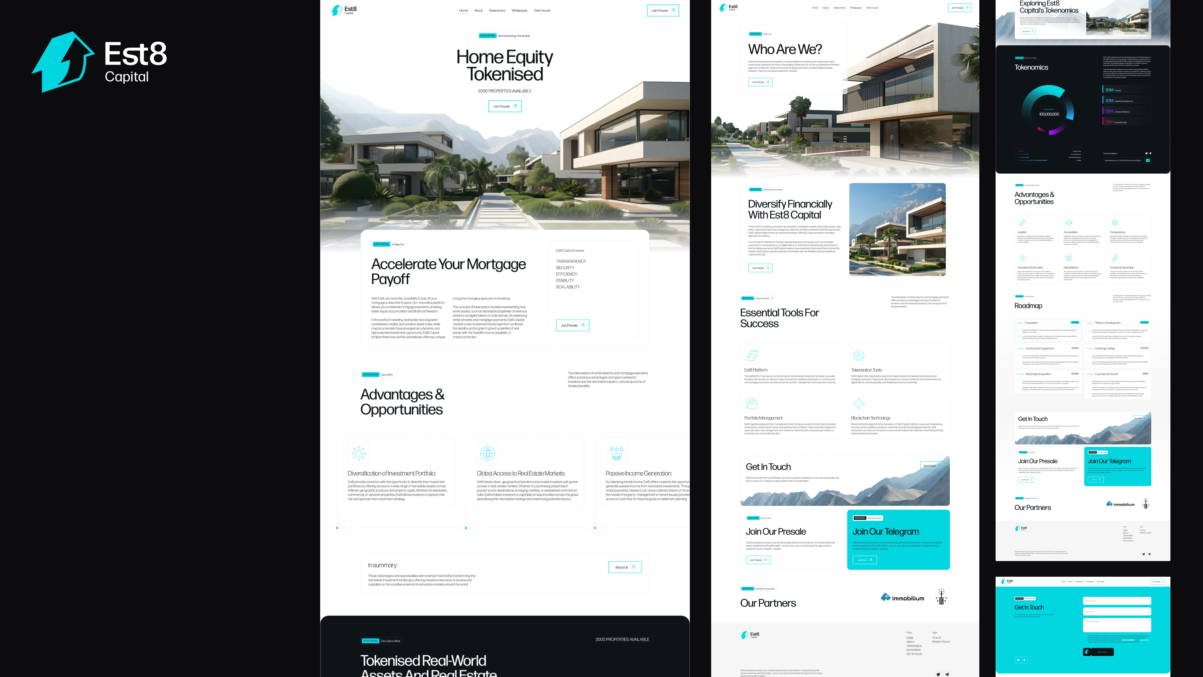 Est8 Capital is a tokenised real estate investment platform combining property-backed assets with blockchain infrastructure. Built around transparency, accessibility and structured capital deployment, the platform is designed to open global real estate opportunities to a wider investor base. With a hybrid model bridging traditional property and digital finance, Est8 Capital required a brand and digital presence that reflected both credibility and innovation.
