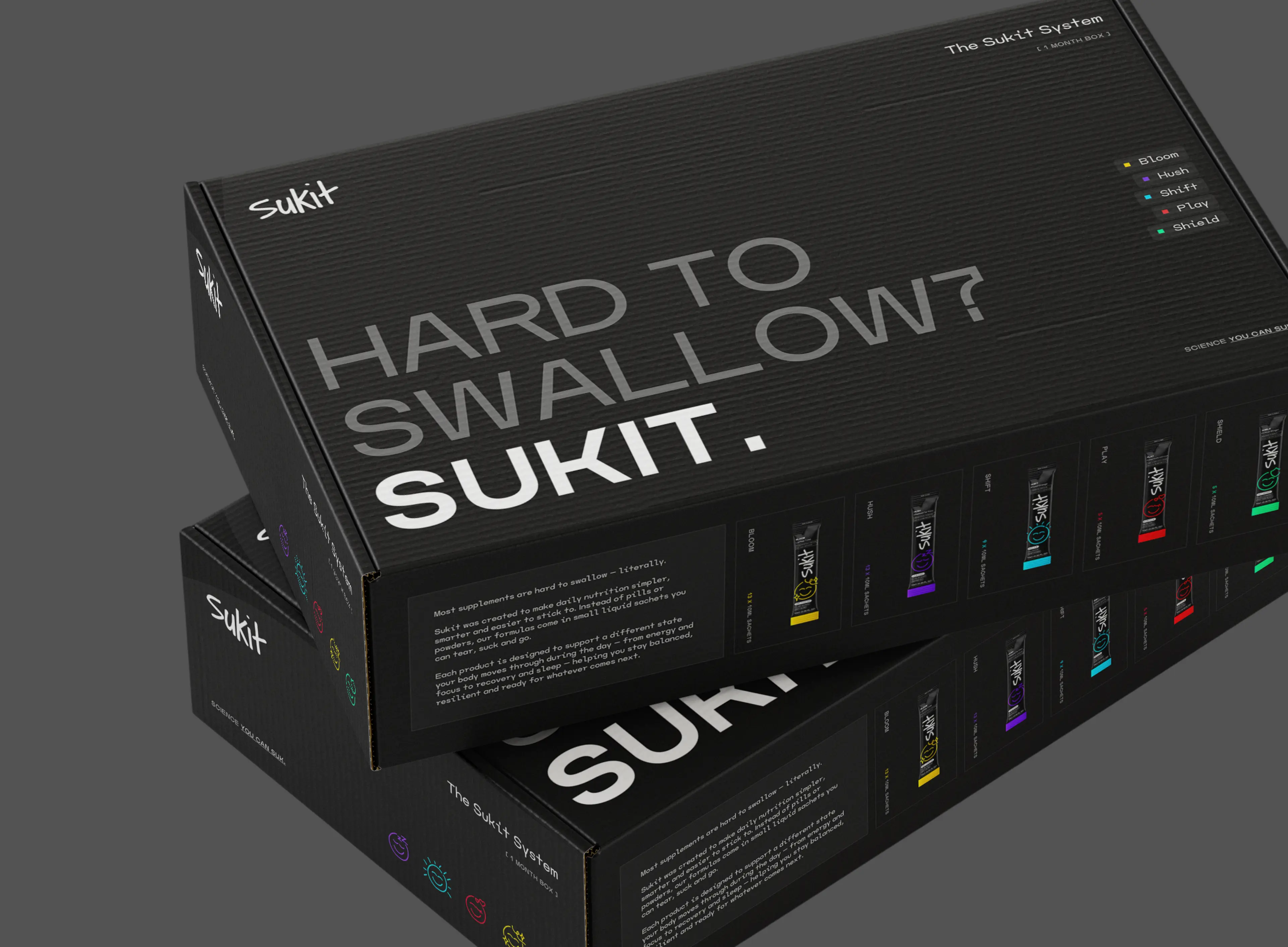 An early-stage consumer supplement brand built around a new product format and a clear point of difference. Backed by a focused founding team, Sukit set out to challenge conventional supplement brands with a more engaging, user-first approach.